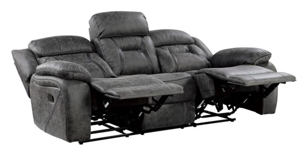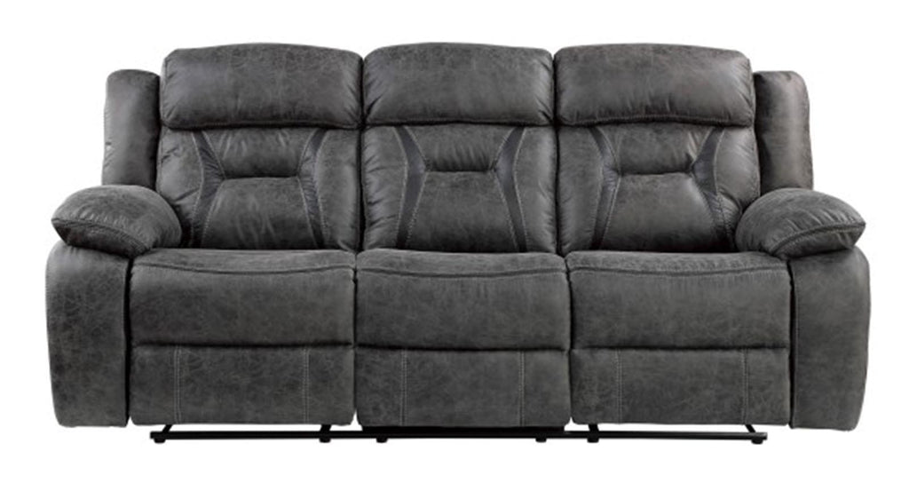 Your vision for creating the ideal environment for rest and relaxation is made reality with the addition of the Madrona Hill Collection. This plush sofa is offered in a gray polished microfiber, with contrast stitching and decorative accent, making it a unique choice for transitional to modern homes. The dual end reclining seats feature manual motion mechanisms that with a pull of a side-mounted tab, take you from seated to reclined in an easy motion.