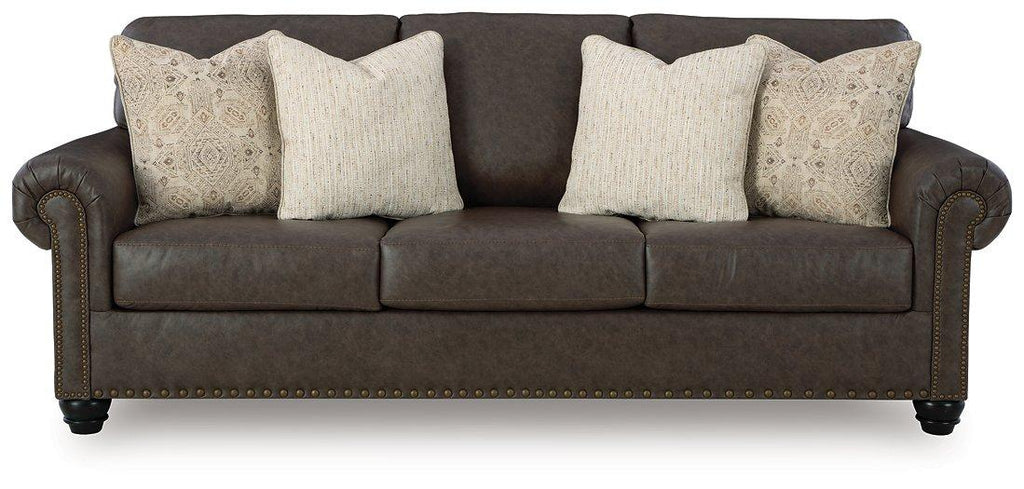 This seating package marries classic character with a contemporary attitude. Love the timeless look of leather? Its take on deep brown faux leather is versatile enough to pair with styles from traditional to modern, at a price that won’t break the bank. Details like nailhead trim and decorative turn legs polish off the set with flair.