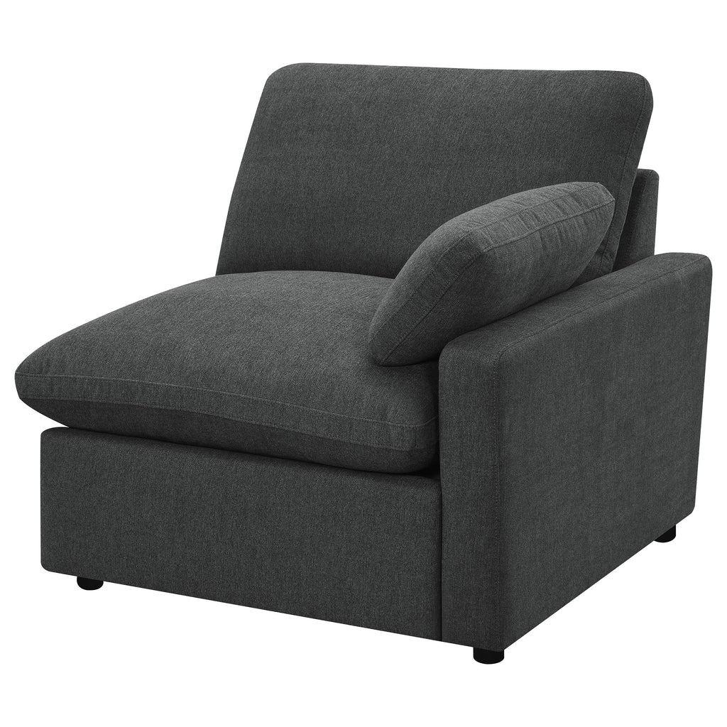 Start off your modular sectional with the LAF power recliner, designed for ultimate comfort and style. This left arm facing power recliner features a sleek, modern design and includes a plush pillow for added comfort. The premium down-like filled cushion provides a luxurious feel, while the power reclining function offers customizable relaxation.