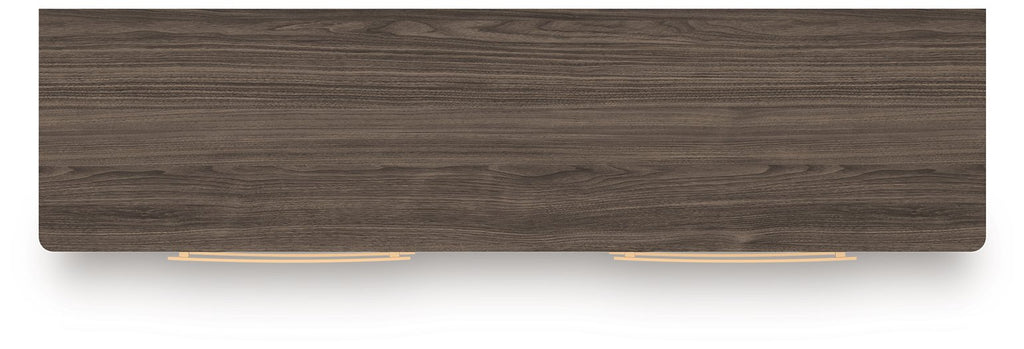 - Dresser with two-tone finish (dark brown finish over replicated walnut grain; matte white finish)
