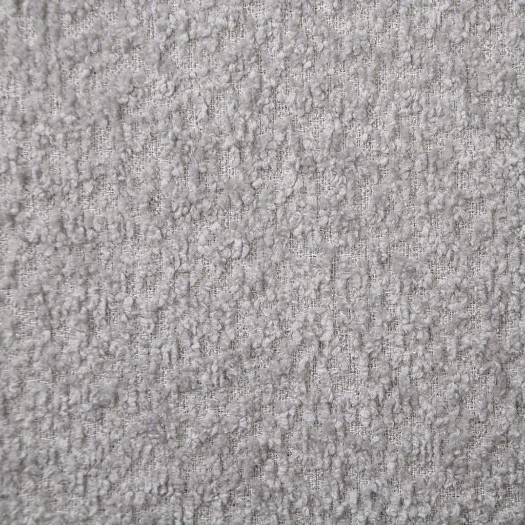 Elevate your bedroom with this modern bed featuring a striking 58-inch tall channel-tufted headboard and matching footboard. Upholstered in soft grey boucle fabric, its textured design creates a cozy and inviting ambiance. Built with durable birch, plywood, and engineered wood, this bed ensures long-lasting support. Foam padding enhances comfort, while black-finished legs provide stability and subtle contrast, making it a perfect statement piece for contemporary spaces.