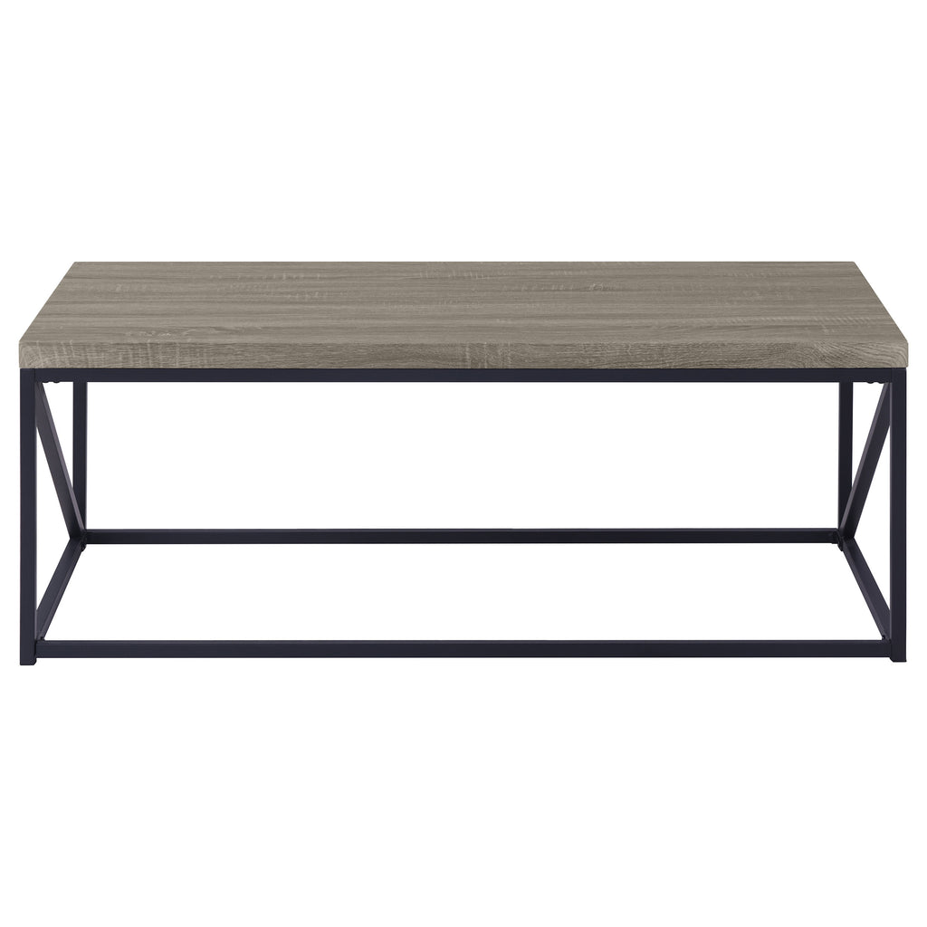 Enhance your living room with this sleek coffee table set, designed for modern and industrial spaces. The engineered wood tops, finished in scratch-resistant sonoma grey laminate, provide a wood-like look with lasting durability. Sturdy black powder-coated metal frames add stability and an industrial edge. This versatile occasional table set offers a cohesive and stylish solution, perfect for pairing with contemporary or minimalist decor.