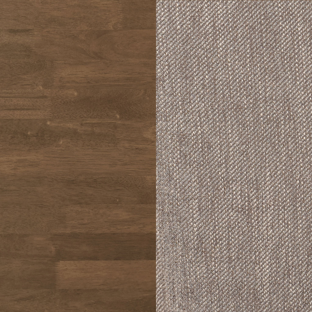 Small kitchens and dining spaces take an early style lead with a casual dining set targeted at versatility and mid-century modern creds. This beautifully designed five-piece set offers construction of walnut finish Asian hardwoods, warm and inspiring of a coastal or Euro look. A convex tabletop profile embellishes the already fresh style of a geometric base with angled open sections interlocking at the base, forming a symmetrical and quirky design with extra verve. Four chairs are charming with a curved, slender back and accents, tapered legs and foot rails. Padded seat cushions with moderate molding are upholstered with neutral brown fabric.