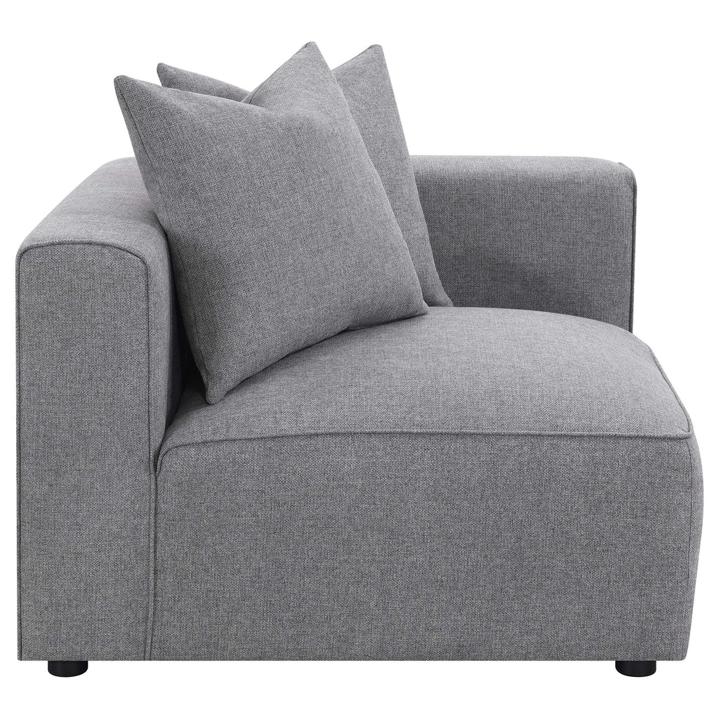 Create your ideal seating arrangement with this contemporary modular sectional sofa, upholstered in a warm and earthy terracotta trillium polyester blend fabric throughout. Tailored tight backs, wide track armrests, and thick cushions, all with self-welt trim edges, invite you to kick back and relax with family and friends. Versatile and modular, shape this sectional sofa to fit your own living room.