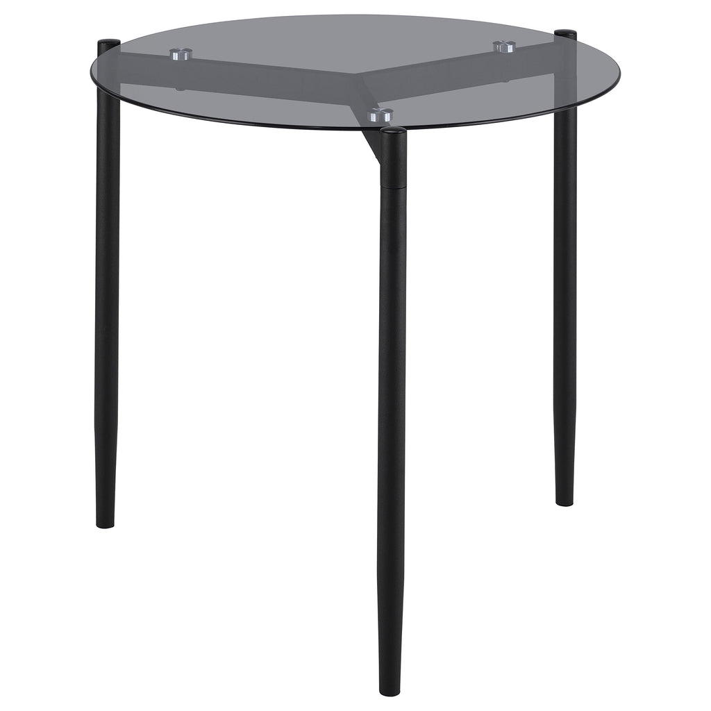 This modern coffee table set includes a sleek coffee table and matching side table, both featuring tempered smoked glass tops for lasting durability and style. Supported by sturdy black powder-coated metal bases with a sandy texture, the set exudes contemporary elegance. The minimalist round designs ensure versatile functionality and seamless integration into any living space. Perfect for creating a cohesive and modern focal point.