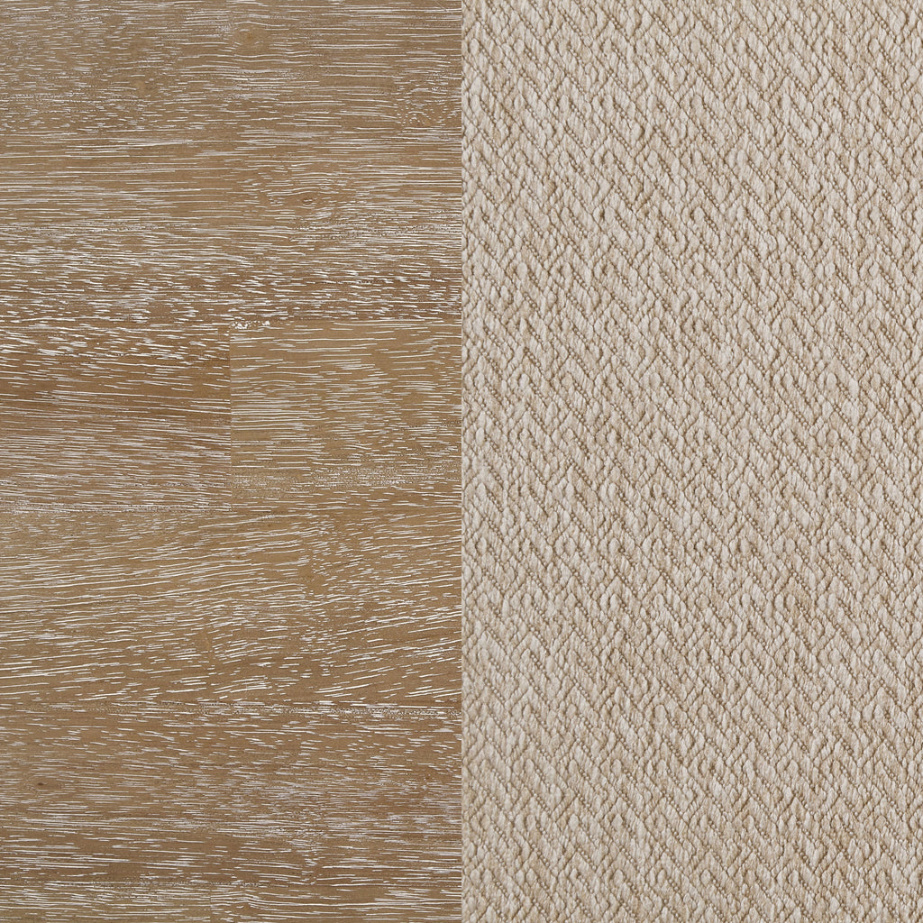 A five-piece modern farmhouse dining set creates a warm, inviting ambiance in your kitchen or dining room. It's a fresh look with timeless underpinnings, showing off clean, straight lines and a versatile washed brown finish. Wire brushing adds depth and creates texture, perfect for a welcoming space for meals with friends and family. The rectangular table is complemented with four side chairs, each with a ladderback that adds updated allure to the set. Chairs are complete with foam padded seats and latte upholstery, complementing the stylish, casual palette of the set to perfection.