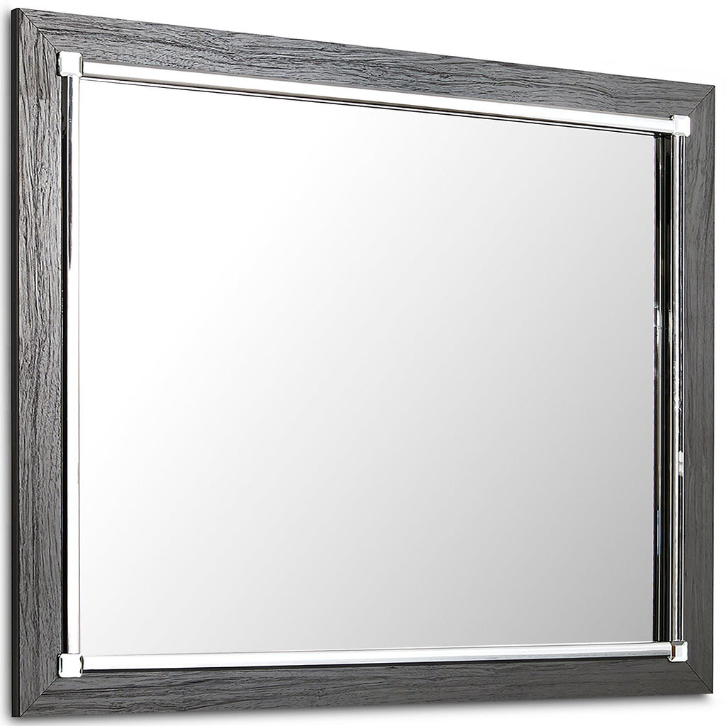 Reminiscent of Hollywood glamour of yesteryear, this dresser and mirror set interprets luxury in a decidedly modern way. A dazzling gray finish and faceted chrome-tone accents enhance the star power. Six smooth-gliding drawers provide enough storage to appease your inner diva.
