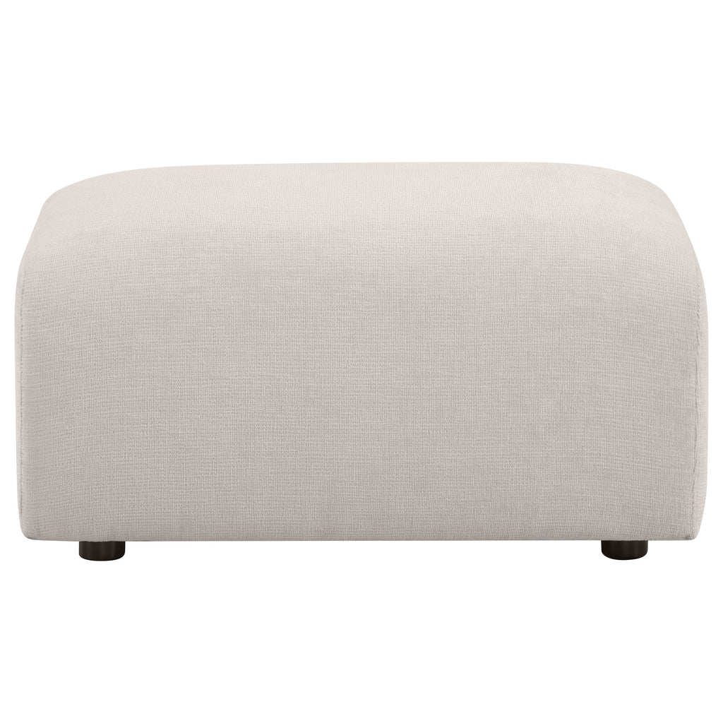 Rounded edges and plush volume define this bold ottoman, designed to pair effortlessly with the collection’s sculptural seating. Wrapped in ultra-soft chenille and padded with dense foam, it serves as a footrest, extra seat, or soft-surface table. Built from rubberwood and engineered wood, this multipurpose piece blends lasting durability with modern comfort. A cozy accent for lounges, living rooms, or open-concept spaces. Key Features: • Ottoman features a rounded silhouette with bold curves and clean, soft edges • Chenille fabric in burnt orange offers rich texture and a warm, cozy look • Padded top doubles as a footrest, casual seat, or soft surface for a tray • Plush foam interior provides inviting comfort and resilient support • Crafted with rubberwood, plywood, and engineered wood for strength • Pairs perfectly with accent chair or loveseat to complete a sculptural lounge set