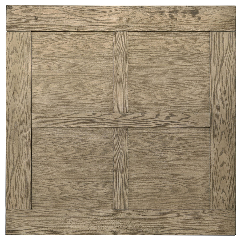 Rooted in rustic charm and elevated with timeless warmth, this counter height dining table creates space for slow meals and lingering connection. The square tabletop rests on bold, grounded legs, all bathed in a vineyard oak finish that highlights every grain. Its raised silhouette encourages comfort and closeness, while the solid rubberwood frame lends enduring strength for everyday gathering and memory-making. Key Features: • Counter height dining table with square top and bold farmhouse-style legs • Vineyard oak finish highlights grain detail with a warm rustic tone • Raised thirty-six inch height perfect for casual elevated dining • Crafted from solid rubberwood for strength and long-term reliability • Compact profile fits comfortably in small dining areas or corners • Pairs with matching counter height chairs for a complete dining setup