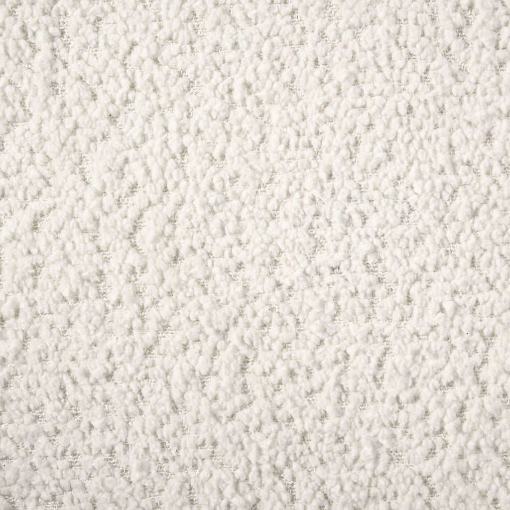 This modern accent chair brings sculptural softness and deep comfort to any living space. Wrapped in a richly textured fabric, its rounded frame flows from low-profile back to wide track arms with effortless ease. Plush foam cushioning and pocket coil seating deliver the ideal blend of sink-in softness and lasting support. With its minimal silhouette and gentle curves, this chair adds a cozy yet elevated presence to any room. Key Features: • Accent chair with sculpted form and rounded silhouette for modern minimalist appeal • Textured white fabric upholstery adds warmth and visual depth to any room • Curved track arms and low-profile frame create a cocoon-like seating experience • High-quality foam cushioning ensures soft comfort and inviting relaxation • Pocket coil seating provides lasting support and maintains its shape • Ideal as a standalone lounge chair or cozy addition to a modern seating arrangement