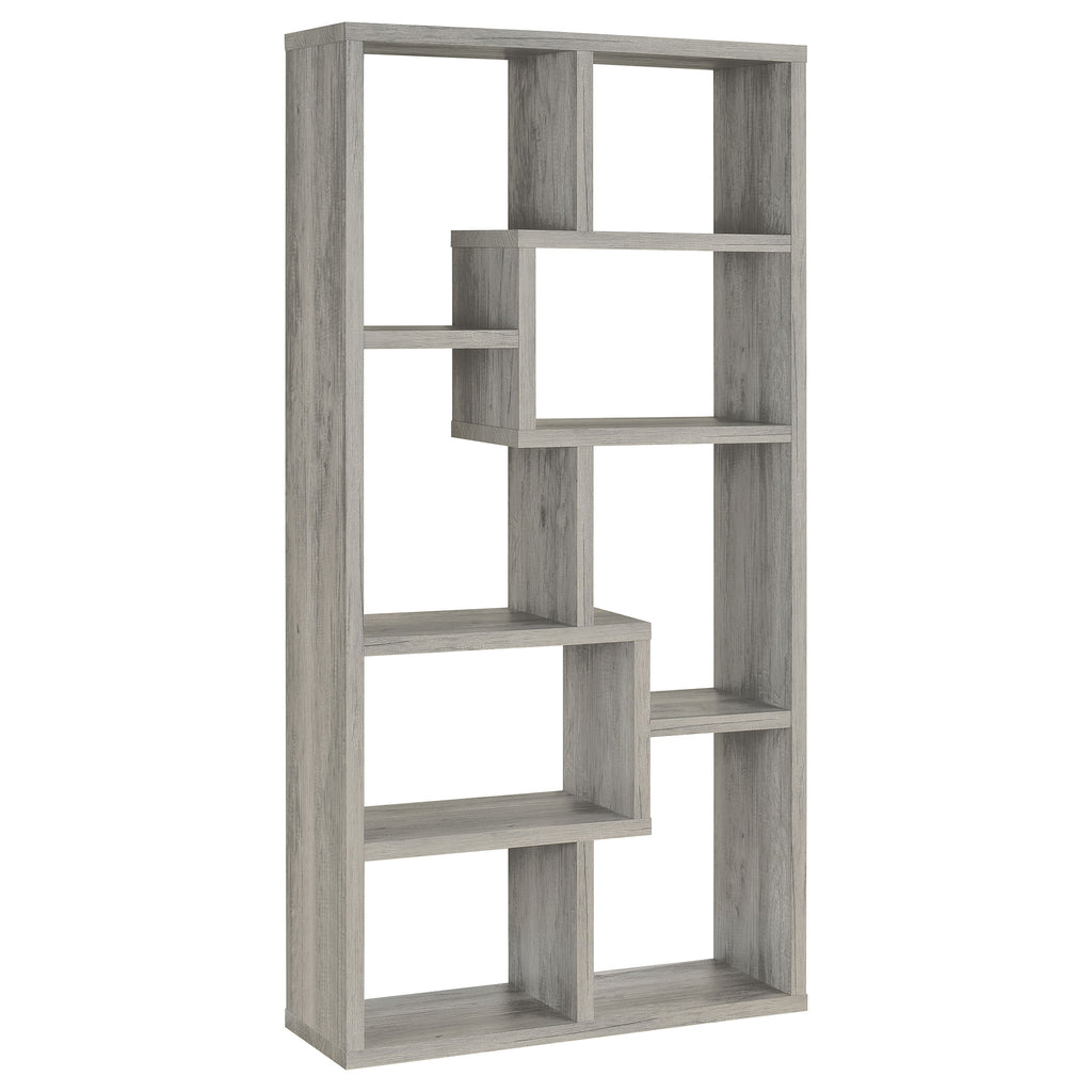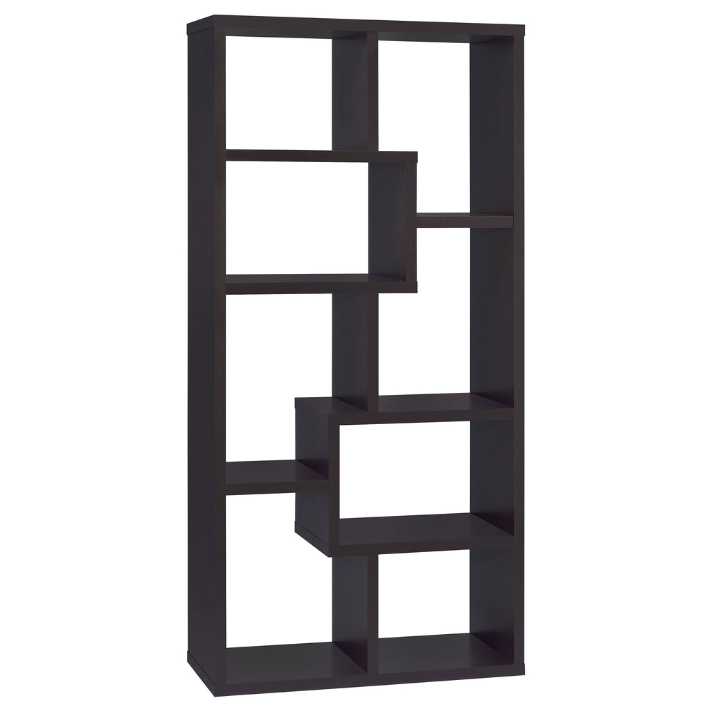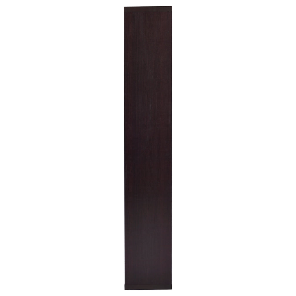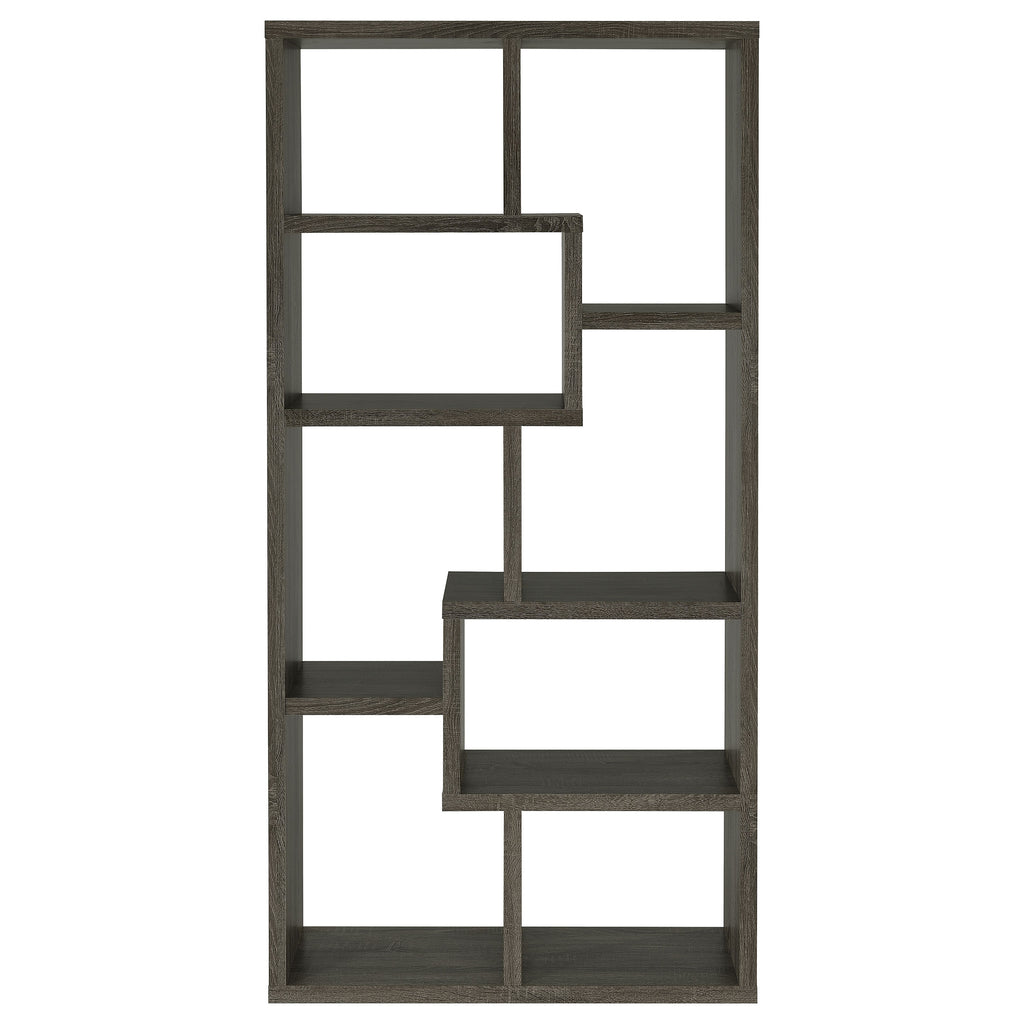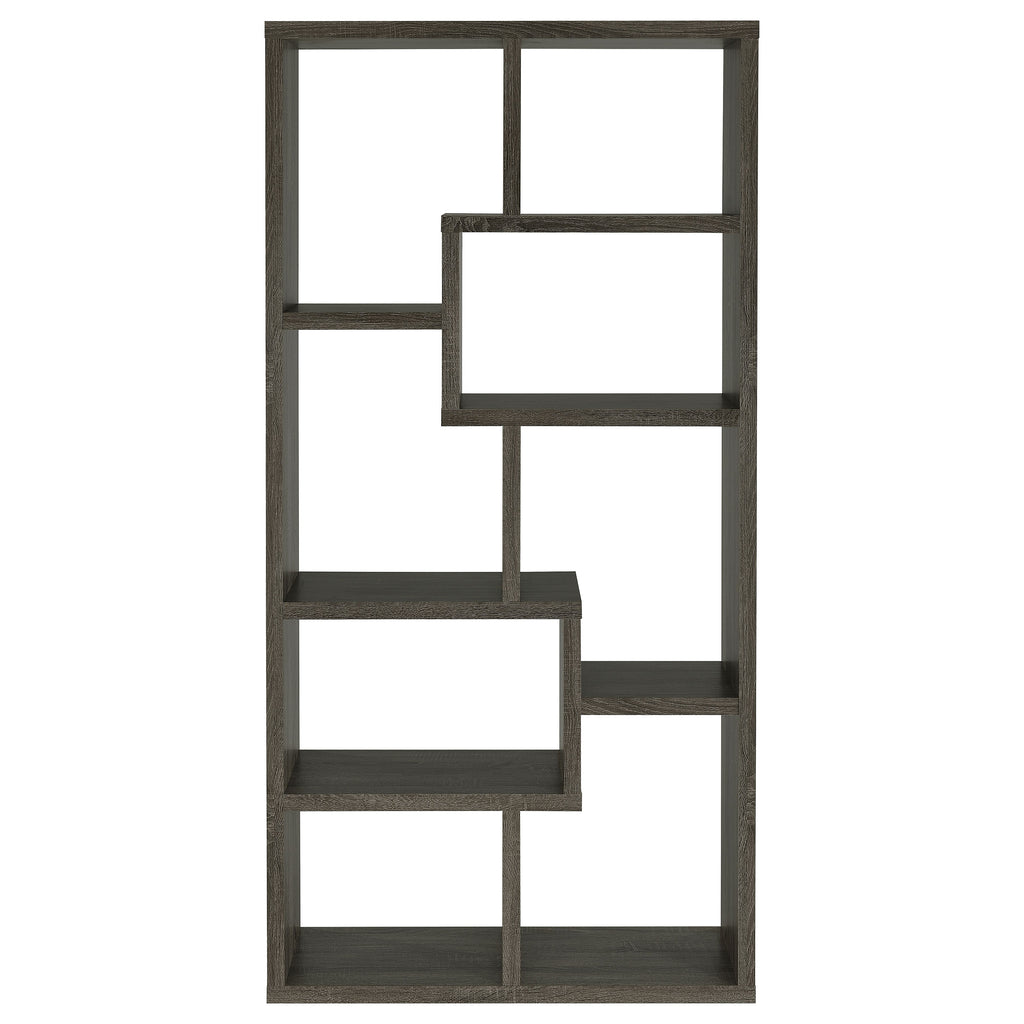 With seven convenient shelves, this bookcase is perfect for keeping your reading materials in one place. Sturdy and durable, it's expertly crafted from MDF, particle board, and engineered veneer. Its striking silhouette is bold, yet refined with geometric shapes of various sizes. It's available in your choice of four stunning finishes to match your decor. Whether it's placed in a home office, living room, or bedroom, this bookcase is an exquisite enhancement to any home.