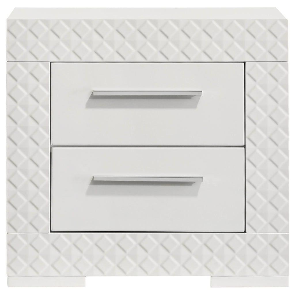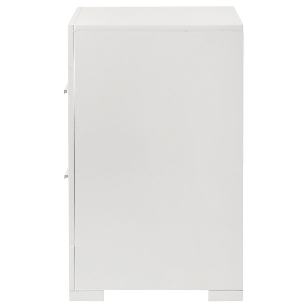 Add a touch of sophistication to your bedroom with this elegant nightstand. Featuring a high gloss finish, it reflects a modern Italian style with a clean, minimalist design. The nightstand includes two spacious drawers, perfect for keeping your bedside essentials organized and within reach. The felt-lined top drawers provide a soft surface for delicate items, while the robust construction ensures lasting durability. This nightstand is a chic addition that complements the contemporary aesthetic of your space.
