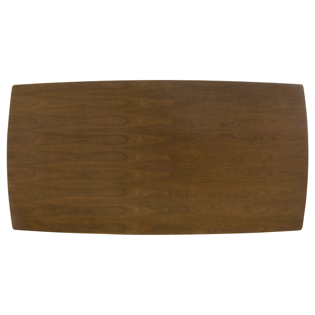 The Malone Collection unveils this mid-century modern rectangular dining table. Fashioned from walnut veneers and finished in rich dark walnut color. Angled legs and solid construction make for durability and sturdiness. As perfect for a cabin in the woods as for a contemporary loft in the city center. Complete the set with corresponding contemporary chairs (sold separately). Key Features: • Rectangular dining table crafted in mid-century modern style • Dark walnut finish enhances warm, timeless aesthetic • Angled legs provide stability and classic design appeal • Constructed from solid rubberwood, engineered wood, and walnut veneer • Spacious 78-inch surface accommodates larger gatherings comfortably • Supports up to 300 pounds for reliable everyday use