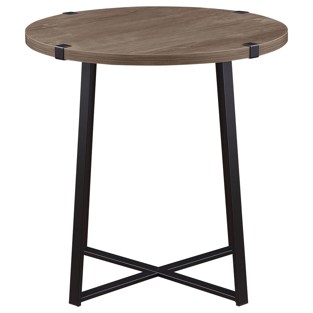 Create a cohesive and stylish living space with this modern coffee table set, designed for both form and function. Featuring engineered wood tops in a warm light brown finish, the set highlights natural wood grain textures for an inviting aesthetic. Each piece rests on a sturdy black powder-coated metal base with intersecting supports for stability. Bracket accents at the edges lend a touch of industrial character. The scratch-resistant laminate veneer ensures durability, making this set perfect for busy living areas.
