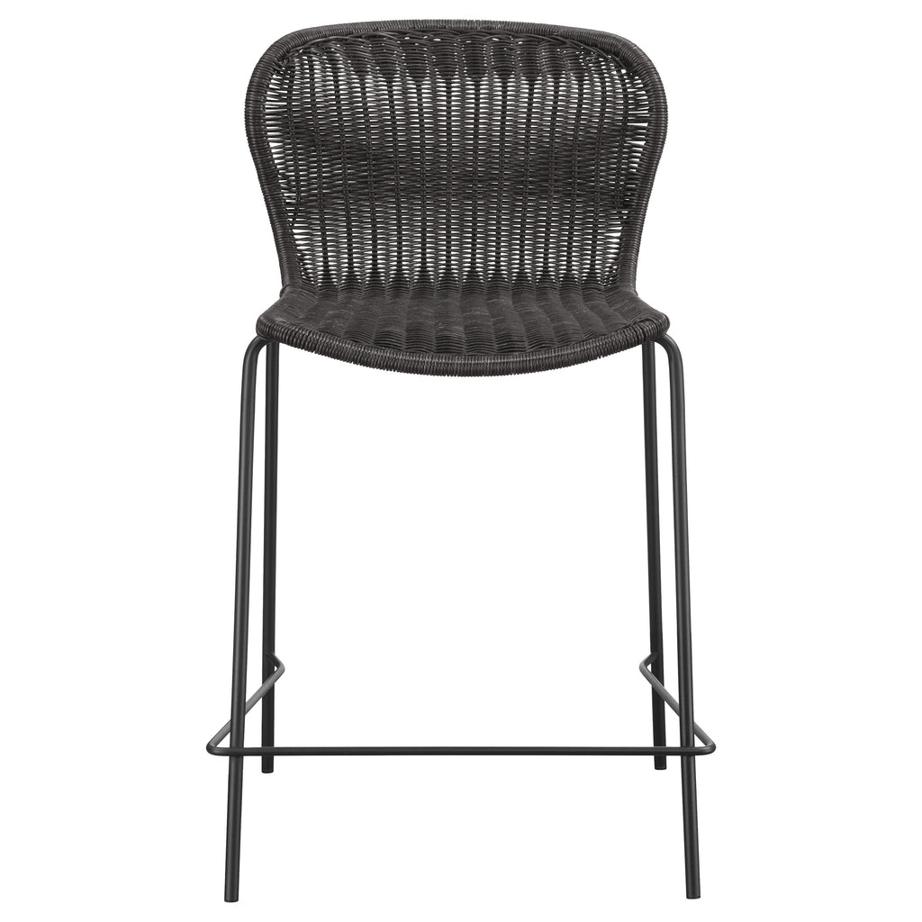 Designed with a mid-century-inspired aesthetic, this contemporary stool offers a charming brown faux rattan seat, nestled in place by an open, airy frame. The seat offers a subtle contoured shape that cradles the torso and offers a comfortable place of rest. Supporting the seat are slender tubular legs in a sandy black finish, pushing the dark tones and hues to create a dramatic, moody feel. Natural elements collide to offer a boho-inspired touch to bars, breakfast nooks and more. Pull this stool up to an elevated dining space for a casual seating arrangement. Key Features: • Contemporary stool with mid-century-inspired aesthetic featuring brown faux rattan seat and open, airy frame • Sandy black finish tubular legs supporting the seat for a dramatic, moody feel • Natural elements create a boho-inspired touch perfect for bars, breakfast nooks and more • Subtle contoured shape of seat cradles the torso for a comfortable place of rest • Pull up to an elevated dining space for a casual seating arrangement