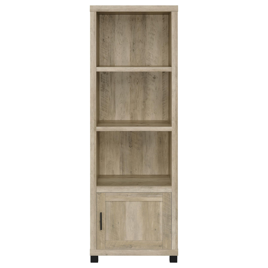 Conveniently designed in a vertical orientation, the Sachin media tower saves precious space in your compact or large living space. Make the most of a rustic look with a tower built of wood products with engineered veneer. Earth-inspired finishes mesh with most surroundings. Four storage compartments and three fixed shelves behind one side-open door invite media, books, or electronic components. Make this media tower an integral part of your updated entertainment plan. Key Features: • Conveniently designed vertical orientation saves space • Rustic look with wood products and engineered veneer • Earth-inspired finishes mesh with most surroundings • Four storage compartments and three fixed shelves • Integral part of updated entertainment plan