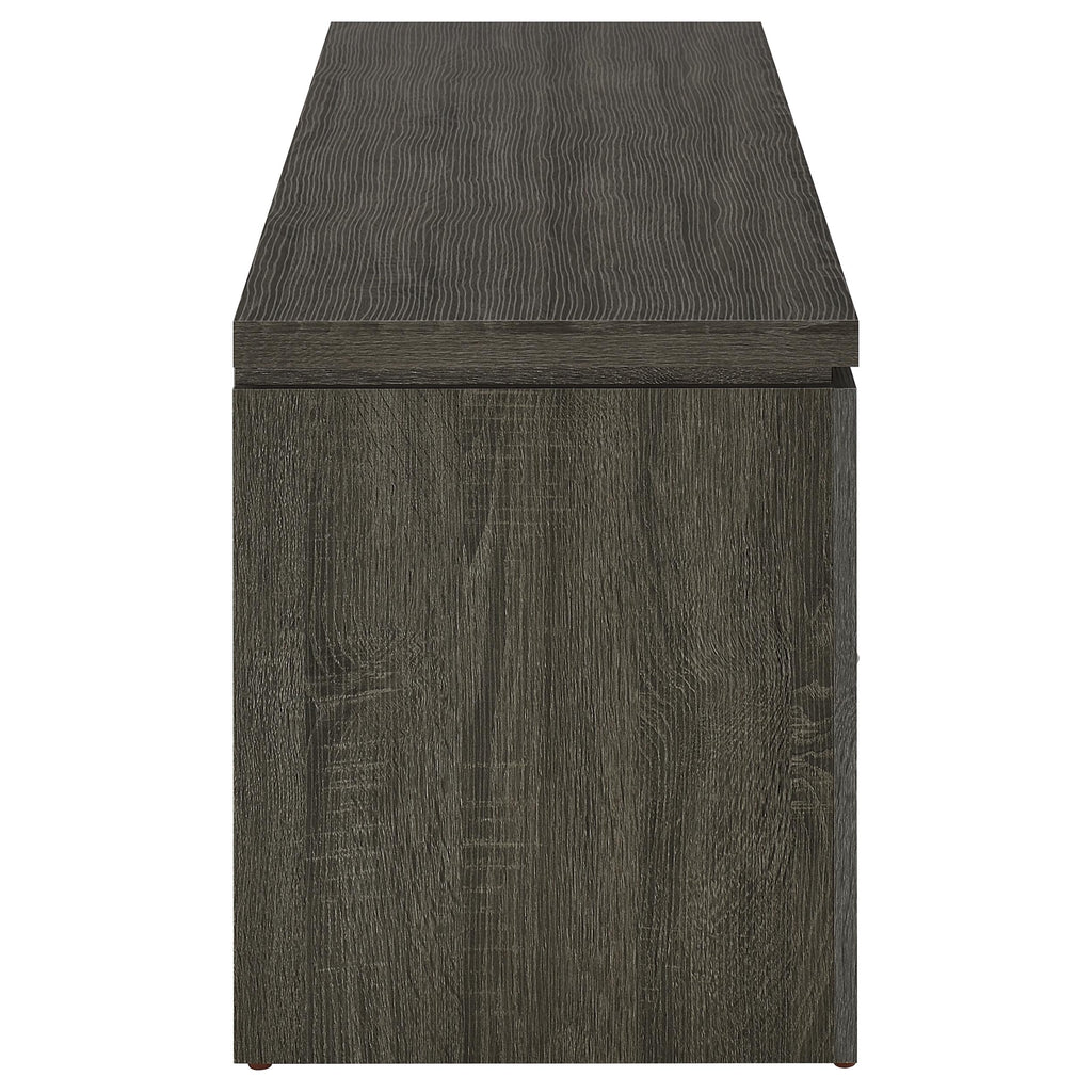 Immerse yourself in the rustic allure of our sturdy TV stand, a harmonious blend of function and aesthetics. Crafted with a rich mango finish, its character is accentuated by rough sawn distressing and layers of warm colors, infusing your space with a touch of vintage charm. Beyond its captivating design, this stand is a testament to thoughtful craftsmanship. It boasts a spacious storage compartment, flanked by two smoothly sliding drawers fitted with euro drawer glides, ensuring easy access. The bold black metal pull handles stand out, providing a striking contrast and ease of use. This TV stand is not just furniture; it's a statement of timeless beauty and functionality. Key Features: • Rich mango finish with rough sawn distressing and layers of warm colors for a vintage charm • Spacious storage compartment and two smoothly sliding drawers with euro drawer glides for easy access • Bold black metal pull handles for a striking contrast and ease of use • Sturdy construction for a testament to thoughtful craftsmanship • Harmonious blend of function and aesthetics for a statement of timeless beauty