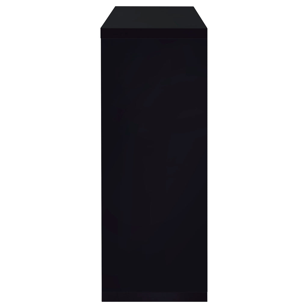 If you love to entertain, you'll love the charm and convenience of this fabulous, contemporary bar unit. With a sleek, stylish design, it looks elegant in a dining area or recreation room. Complete with a gorgeous gloss black finish and shining chrome accents, its bold silhouette makes a striking statement. This handsome unit includes two glass storage shelves for wine, glassware, and bar accessories. A handy wine glass holder rounds out its versatile appeal. Key Features: • Smaller footprint makes this contemporary bar unit a hit • Elegant, clear tempered glass shelves provide strength • Two (2) glass shelves with guardrails and stemware racks add storage and protect the stored items • Steel, MDF, particle board, and laminate construction • Choose from glossy black, glossy cappuccino, glossy white, or weathered grey