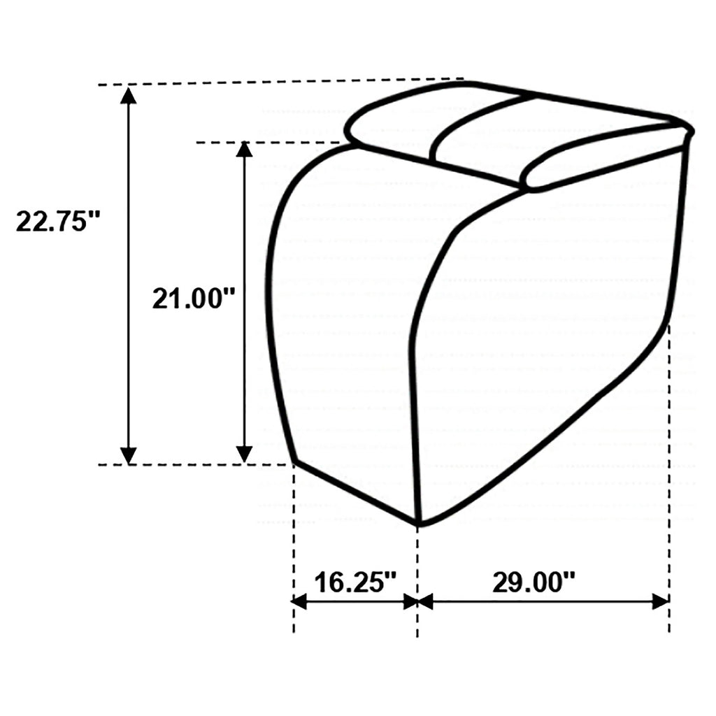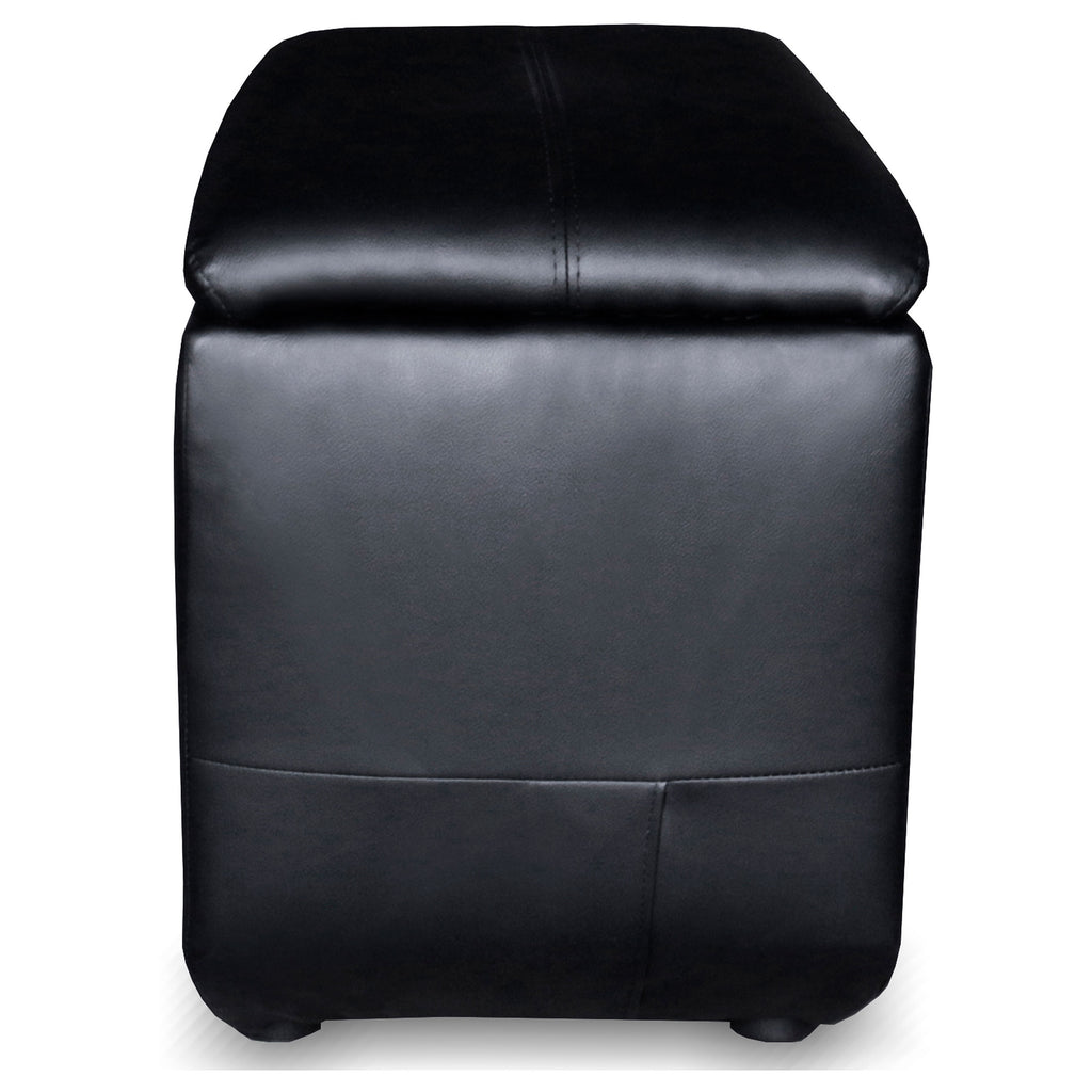 Dress up a home theater room with this sleek black console. Great for nestling between chairs, this console was designed with comfort in mind. Add extra space between recliners with the smooth front and the rounded top. Deep tones offer a clean feel to the modern silhouette. Build a set of side by side recliners for family movie night or to fill any size theater room.