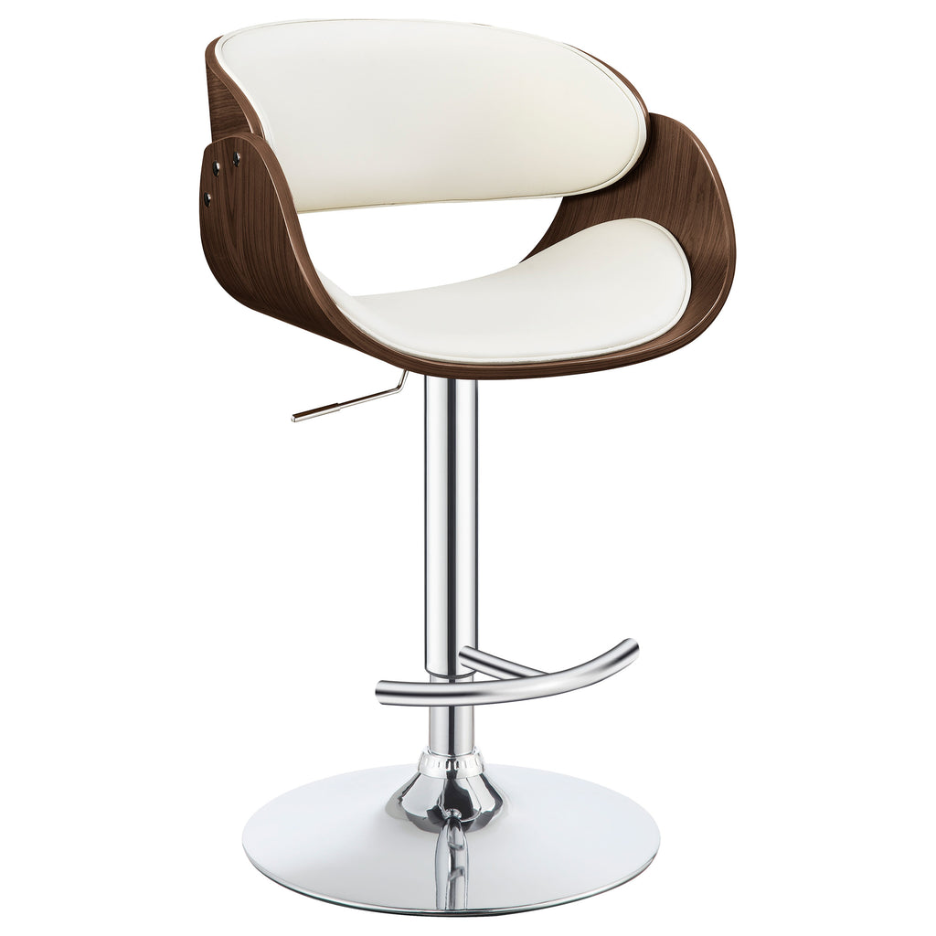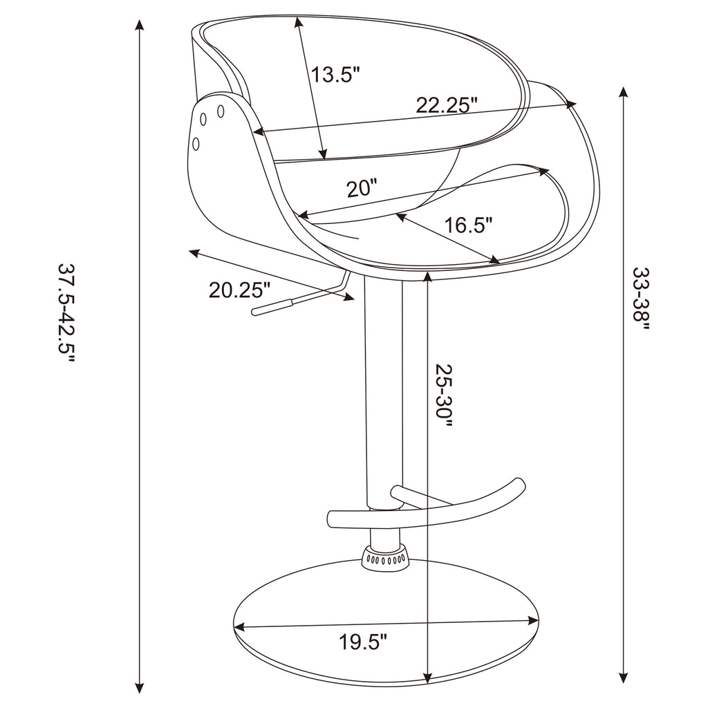 Perfect for a home bar or kitchen island, this barstool is conveniently height adjustable to fit with any space. Beautifully designed, it features a simple, sleek support that flares elegantly into a sturdy, round base. Its seat boasts a cool, curved silhouette with a pleasingly modern feel. The shiny finish of its base creates an appealing contrast to the subdued shades of its seat. With comfortable back and foot rests, it offers maximum support and durability. Key Features: • Height adjustable to fit any space • Sleek support flares elegantly into a sturdy, round base • Cool, curved seat with modern feel • Shiny base creates contrast to subdued seat • Comfortable back and foot rests for maximum support and durability