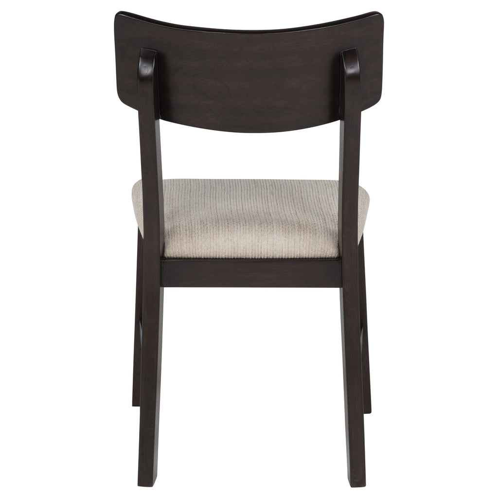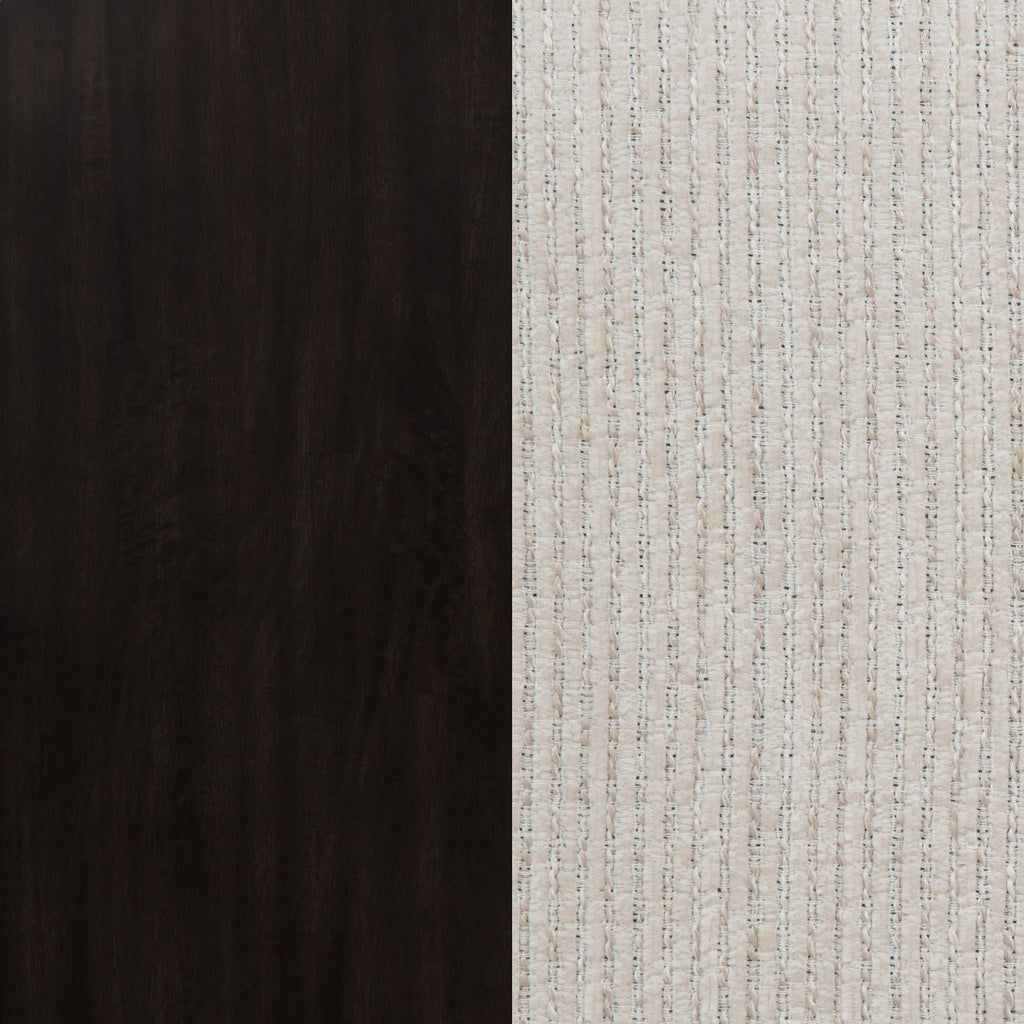 Gracefully tailored for intimate meals and lingering conversation, this five-piece round dining set brings charm and function to the heart of your home. The drop-leaf table blooms with ease, offering flexibility for everyday dining or special moments. Each chair cradles you in comfort with its curved backrest and plush ivory seat. Rich in dark coffee tones and crafted from rubberwood, mango, and engineered wood, it weaves elegance and warmth into every shared gathering. Key Features: • Five-piece round dining set with drop-leaf table for casual and expanded dining use • Dark coffee wood finish lends richness and warmth to compact dining spaces • Drop-leaf top folds down to conserve space when not in use • Chairs feature gently curved backs and soft cushioned seats in ivory fabric • Crafted from rubberwood, mango, engineered wood, foam, and fabric upholstery • Perfect for cozy kitchen corners, apartments, or breakfast nooks