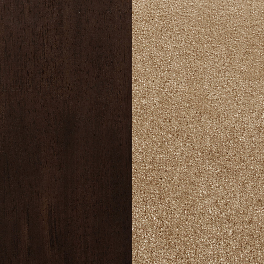 Maximize your dining space with this transitional three-piece dining set that's perfect for a breakfast nook or an apartment setting. The cozy set features a table with a drop-leaf extension and two (2) two-tone lattice-back chairs. The table is crafted with solid block legs and comes in a warm cappuccino finish. The stylish chairs are upholstered in a cushioned tan fabric and tapered legs with the same cappuccino finish as the table. It's a perfect set for a cozy gathering.