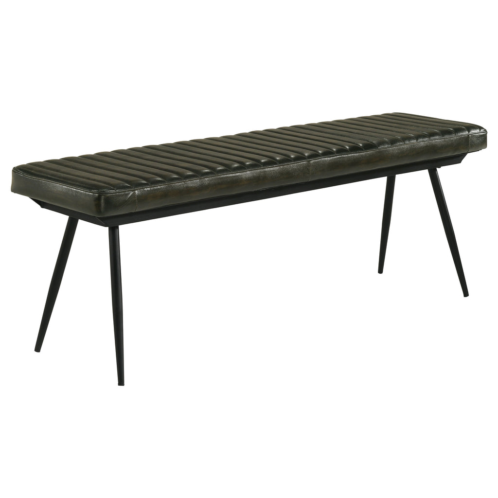 The easy, nature-inspired presence of gorgeous wood delivers a tasteful look to this five-piece dining set, a super choice for any space. Start fresh with a set anchored by a natural finish sheesham table with a spacious rectangular top and tapered, rounded legs. A dark apron with geometric design detail adds an energizing effect. Mid-Century Modern influence styles easy side chairs with scoop seats and a thick back, both with channeling. Metal framing features iconic retro slender rounded, splayed legs.