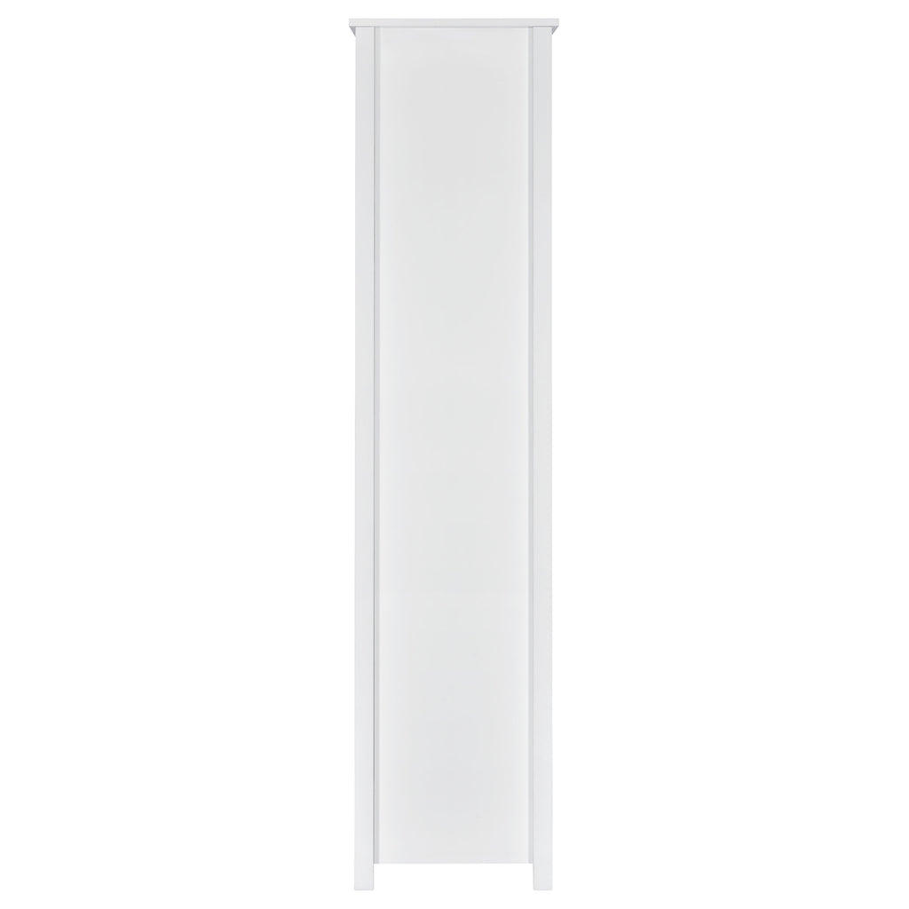 Asymmetrical shelves stack against one another to create this stunning, contemporary bookcase. A stylish, eye-catching addition to a home office, this minimalist bookcase invites you to organize office accessories or showcase decor and family photos. Eight separate sections divide items categorically if you wish, while a bottom drawer keeps items out of sight. The single drawer is adorned with a sleek, brushed zinc pull that further lends to the chic nature of this bookshelf. Versatile and functional, place this tall bookcase in the room of your choosing. Key Features: • Contemporary bookshelf with asymmetrical cubed layout and one storage drawer • White high gloss finish adds sleek shine and modern appeal • Eight open cubbies offer display space for décor and essentials • Lower drawer with silver pull stores smaller accessories out of sight • Engineered wood and laminate veneer construction provides durability • Compact profile fits home offices, bedrooms, or living rooms