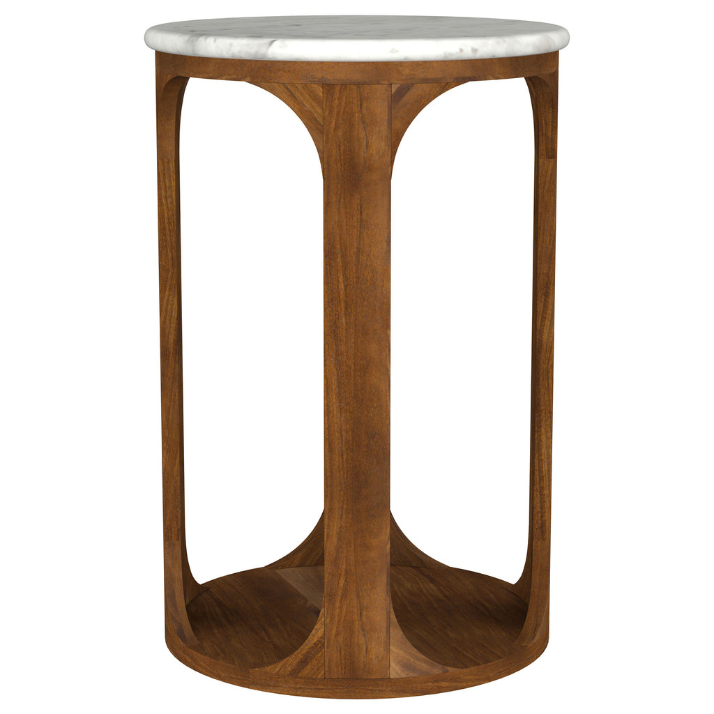 Elevate your living space with this sophisticated side table, blending timeless materials with modern design. Featuring a stunning round genuine marble top, it offers a luxurious surface for displaying decor or holding beverages. The sturdy frame is expertly crafted from solid mango wood, showcasing natural wood grain details that add warmth and character. Perfect for living rooms, bedrooms, or entryways, this side table is a functional piece of art that effortlessly complements a variety of interior styles.
