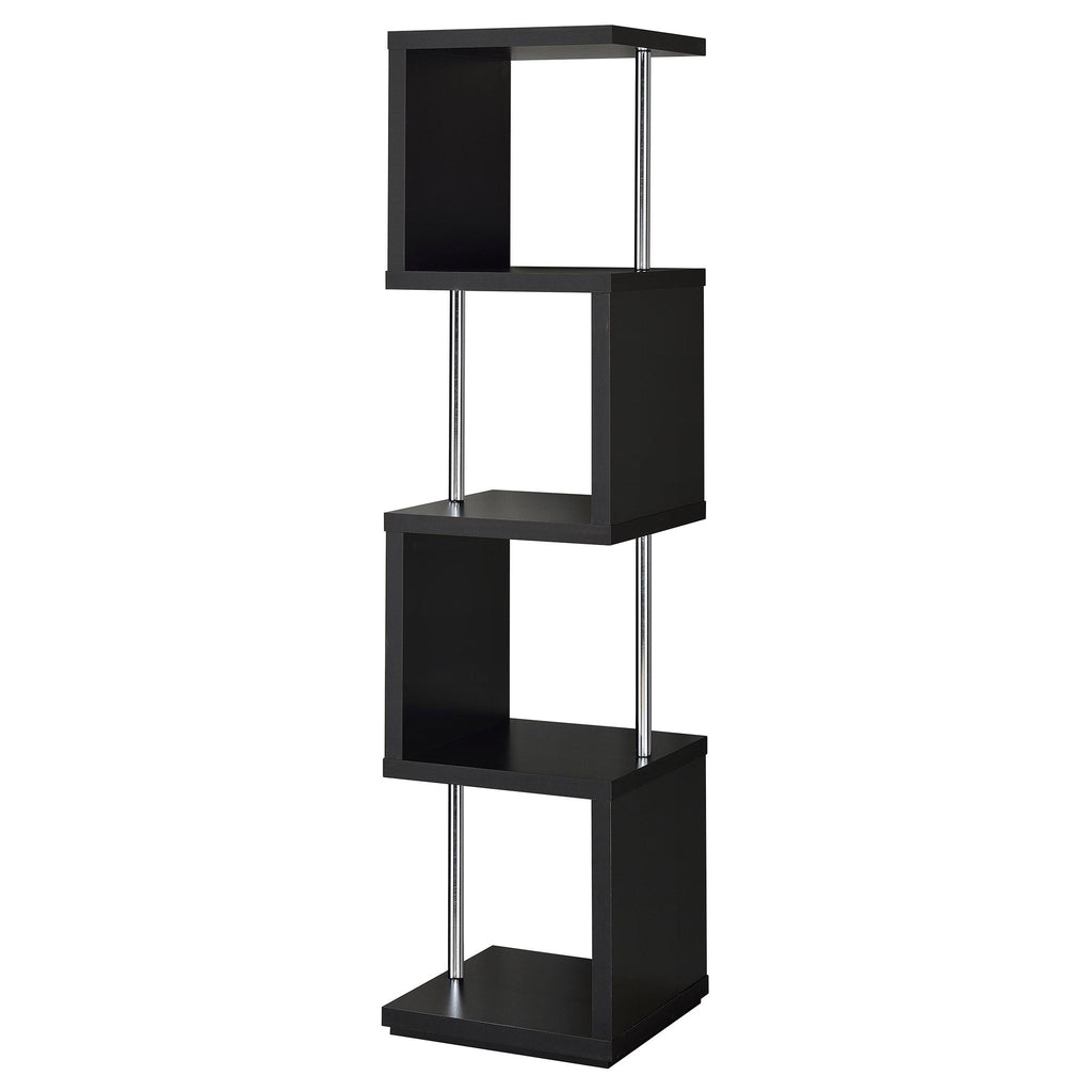 Go with the flow in a modern space with an edgy, artistic look. This four-tier bookcase is a great option for a compact space. Enjoy a modular, geometric silhouette and a choice of finishes. Steel supports reinforce shelving that hosts books and decor. Choose from finishes that intensify the attitude of your custom space.