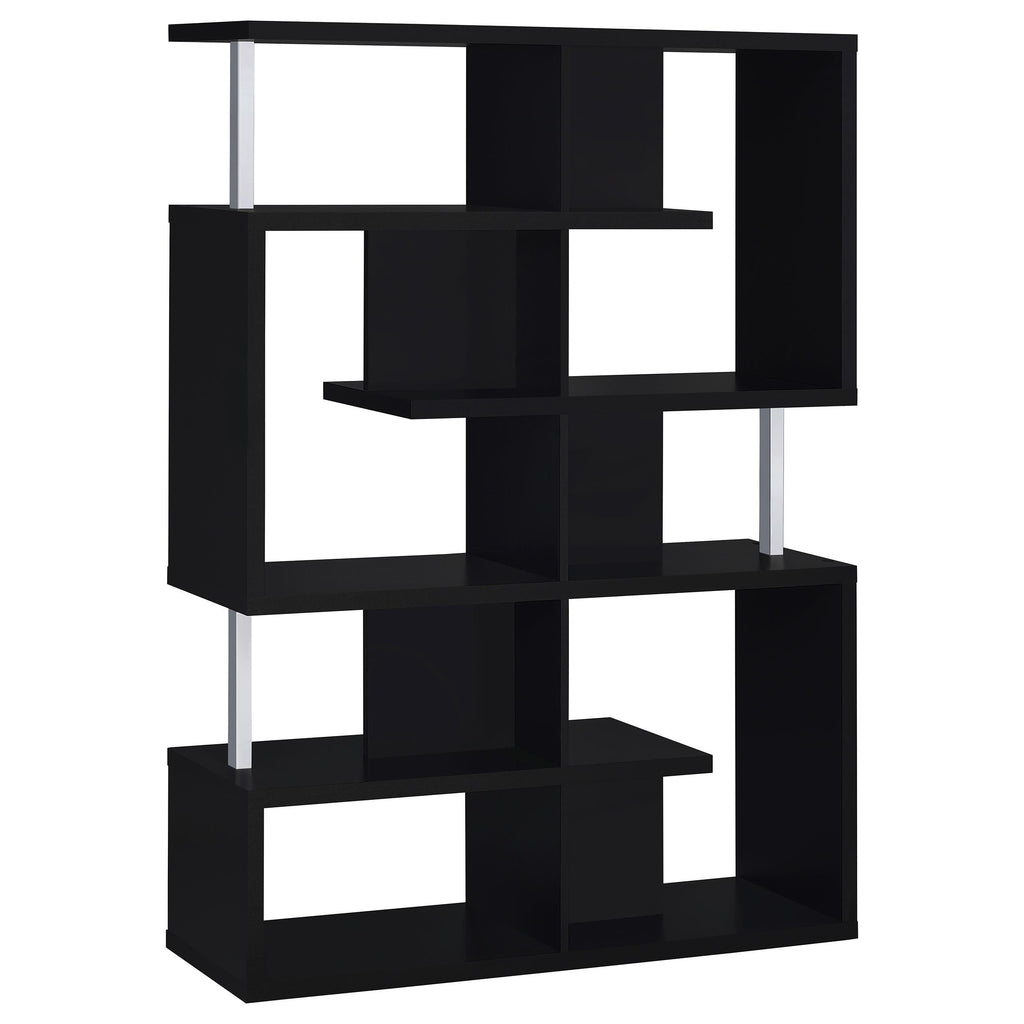 Accentuate an office or living room with style and pizzazz. This double bookcase boasts five tiers of multi-level shelves, providing plenty of space for storage. Choose a black finish for a more subdued look, or white for a kick of contemporary cool. Chrome details liven up its artful design. With its modern silhouette, this bold bookcase is sure to be a conversation piece.