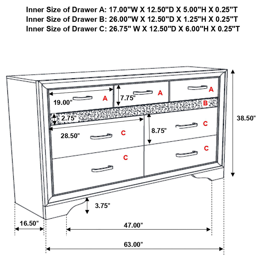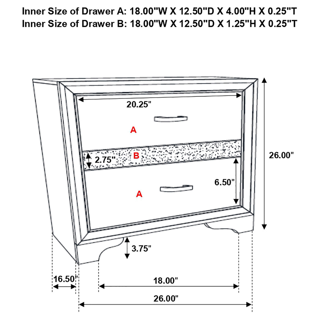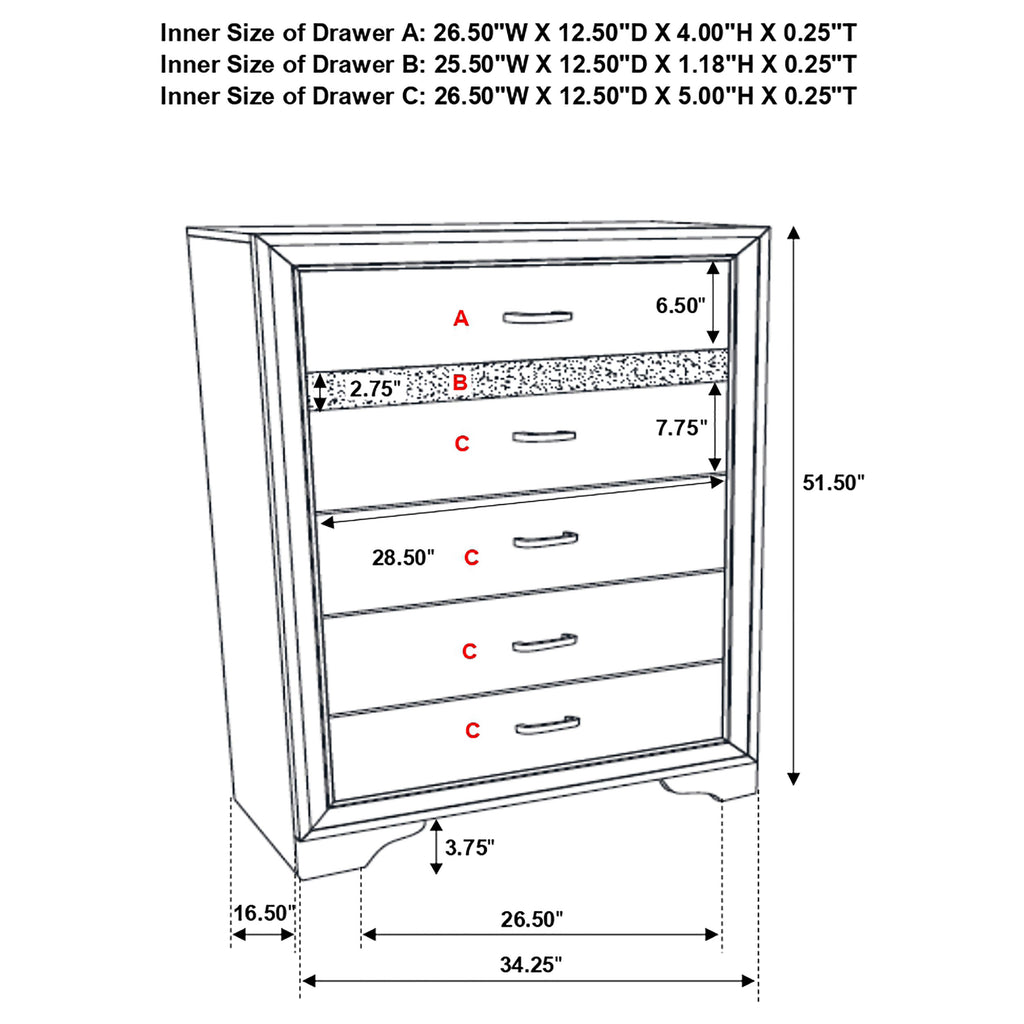 Stylish and ultra-chic, this glamorous, five-piece bedroom set is the ultimate in modern luxury. A bed, nightstand, dresser, mirror, and chest are all included, giving you everything you need to complete your bedroom ensemble. The mattress-ready platform bed offers the added bonus of footboard storage. The dresser, nightstand, and chest are also equipped with roomy drawers to maximize storage space. Glittery stripes and rhinestone detailing add a brilliant touch of bling to this exquisite bedroom set.