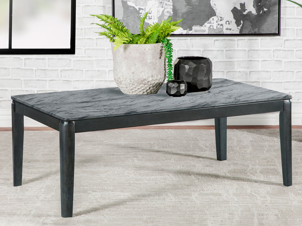 Elevate your living room with this durable coffee table, featuring a high-pressure laminate top in a sophisticated grey faux marble finish. Designed for resilience, the surface is break-proof, scratch-resistant, and burn-proof, making it both stylish and functional. A solid rubberwood frame and sturdy black-finished legs provide dependable support and timeless elegance. Perfect for daily use, this coffee table seamlessly blends contemporary aesthetics with robust materials for lasting appeal.