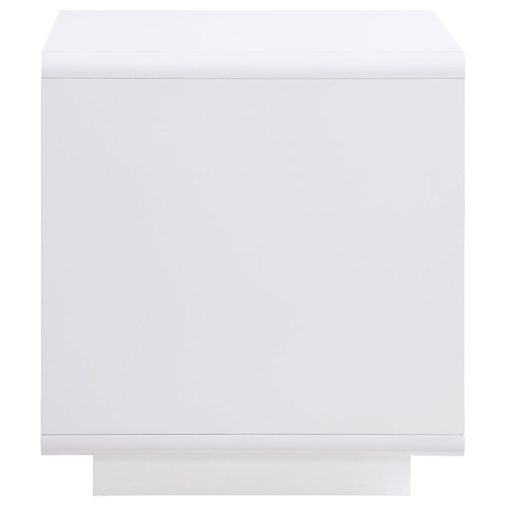 This matching end table continues the refined aesthetic with a white high gloss finish over engineered wood. Its compact form works perfectly as a side table or occasional table, while the open shelf adds convenient utility. As an accent table or utility table, it seamlessly aligns with the coffee table’s sleek presence, enhancing a cohesive, modern living room setting.