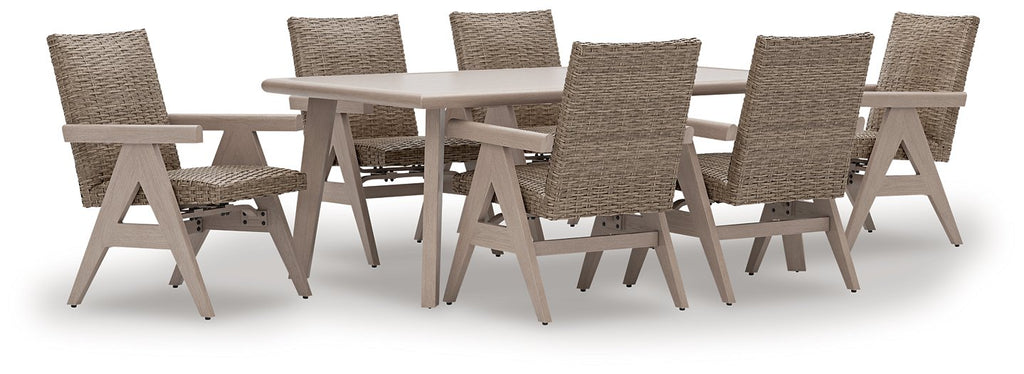 The naturally beautiful look of wood. The easygoing charm of woven wicker. And did we mention durability? This outdoor package is crafted with elevated style and everyday function in mind. With sturdy aluminum frames and resin wicker, these pieces withstand the weather while making a chic statement on your deck or patio. Quick-dry foam cushions complete the set, adding comfort and convenience.