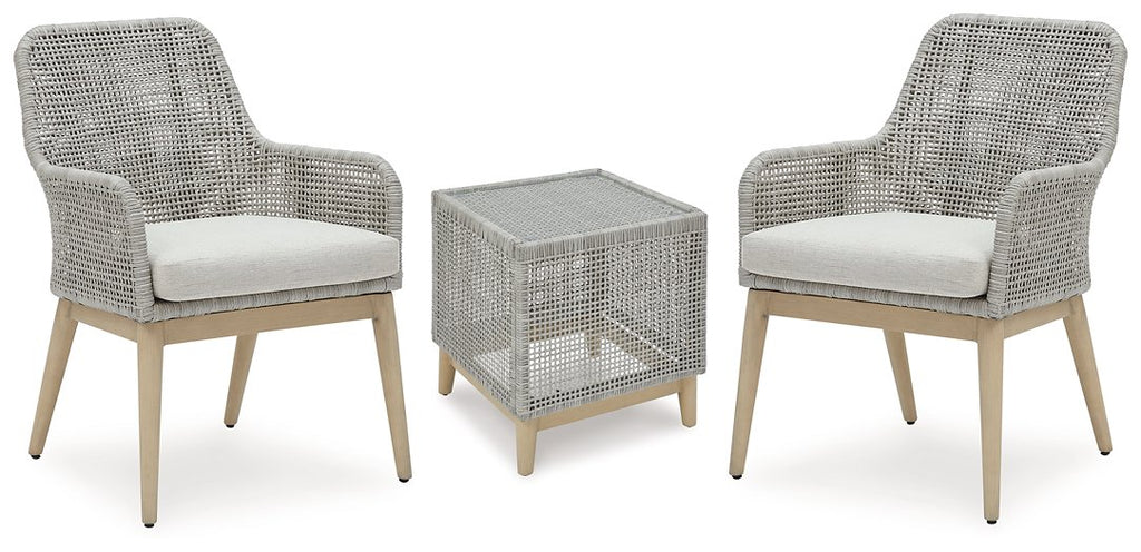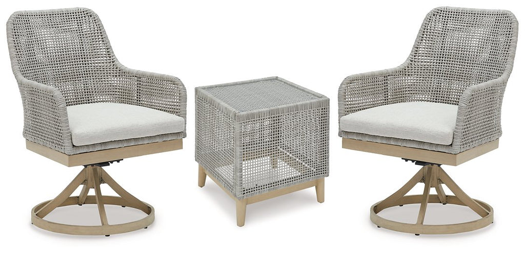 This outdoor seating package invites your casual contemporary style outdoors. Its resin wicker in a chic neutral hue expertly marries refined design with durability. Breezy summer mornings and cold winter nights are made all the more comfortable with high-performance Nuvella+ fabric covering the seat cushion.