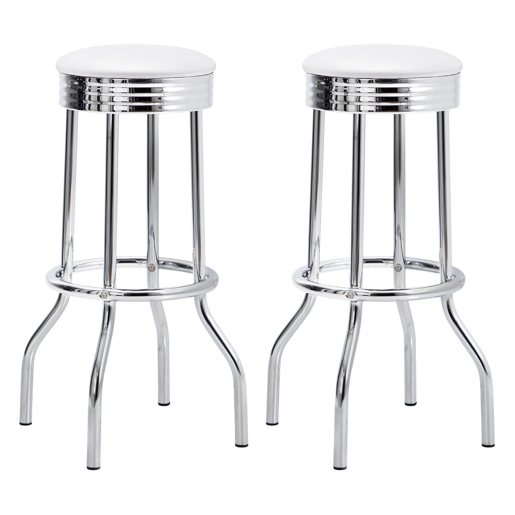 Theodore Upholstered Top Bar Stools White and Chrome (Set of 2)