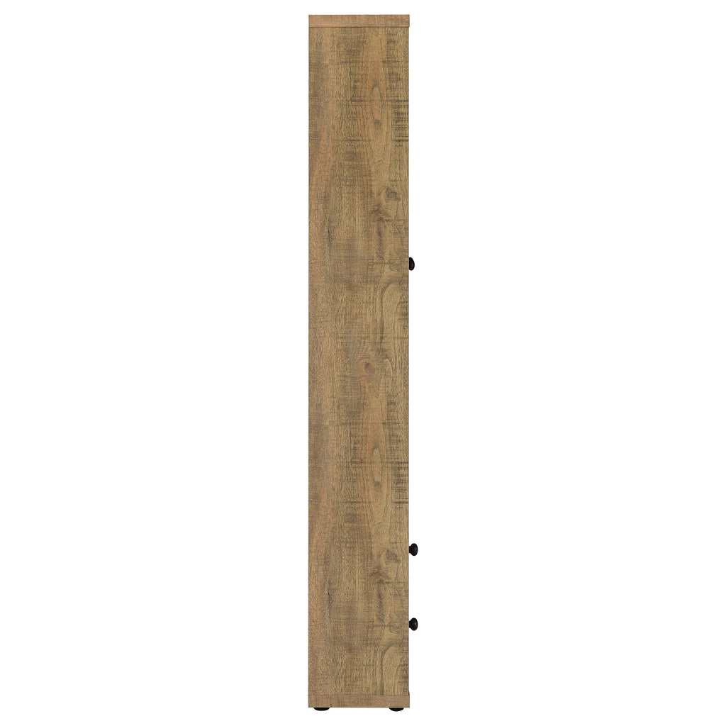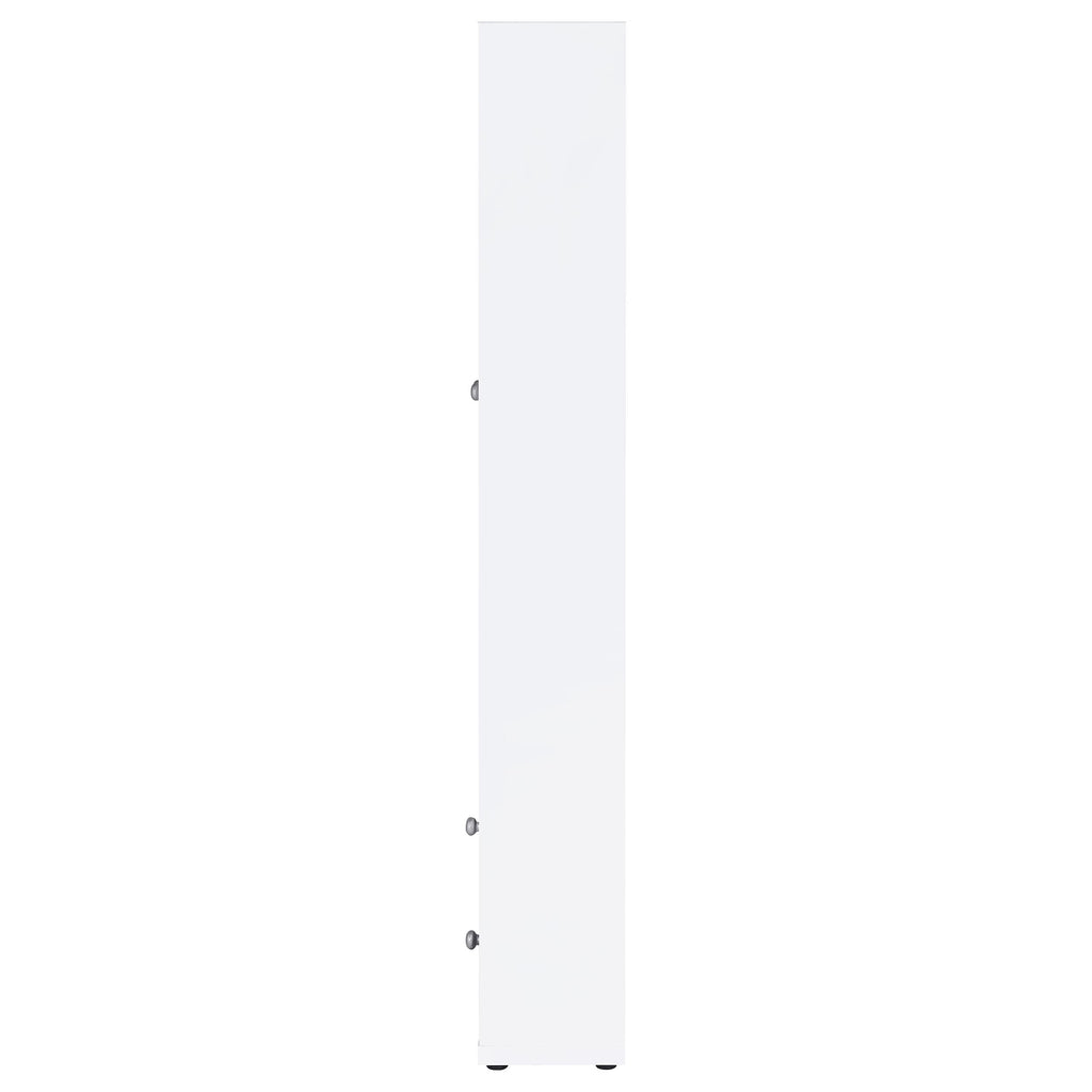 Glass doors are a key feature on a modern accent cabinet that blends into a variety of decors and living spaces. Providing four shelves for showing off everything from glassware to travel souvenirs, the cabinet features wood framed glass doors. They open to reveal two stationary and two adjustable shelves to accommodate all manner of items. In the base of the cabinet, two drawers add concealed storage, perfect for linens in the dining room, games in the den, and much more. The cabinet shows off a streamlined silhouette with petite round knobs that add the barest hint of texture and dimension to a neutral finish.
