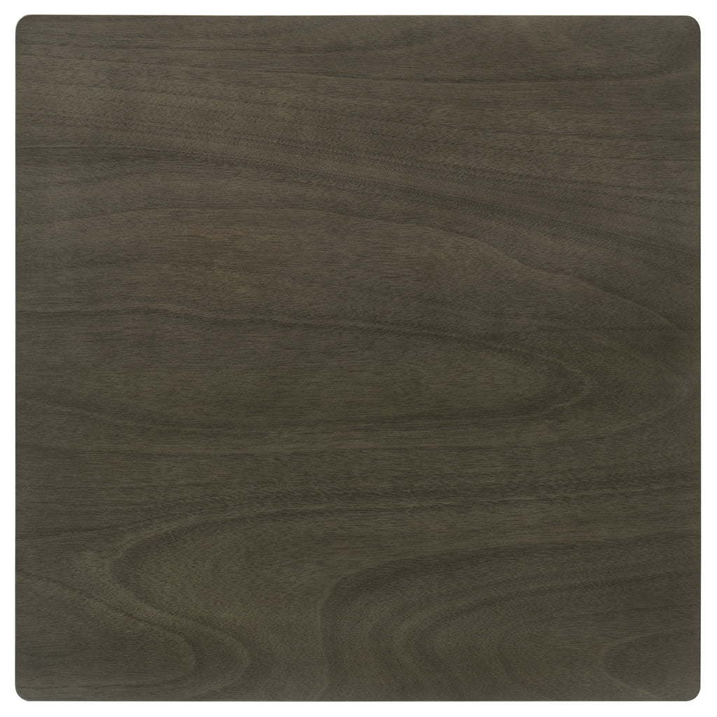 Perfectly sized for a breakfast nook or compact dining room, this contemporary five-piece dining set offers inviting style and a compact profile. The set centers on a square dining table crafted of wood with okume veneer in a stylish, neutral finish. Four chairs complete the set, offering comfort with plush foam padded seats and black faux leather upholstery. Open slatted backs bring an airy touch while maintaining the classic look of this understated set. This set seats four comfortably and looks great with table linens that add a bit of personality.