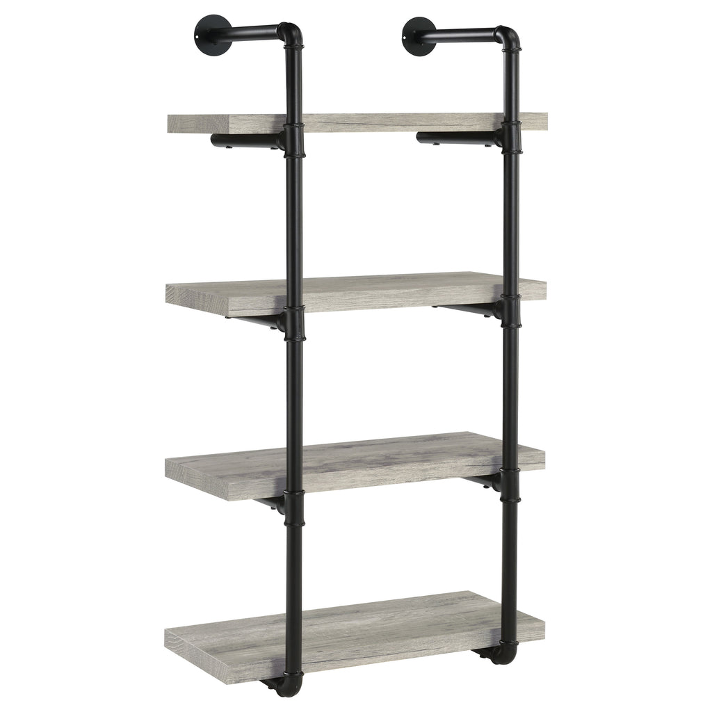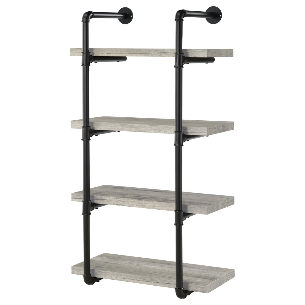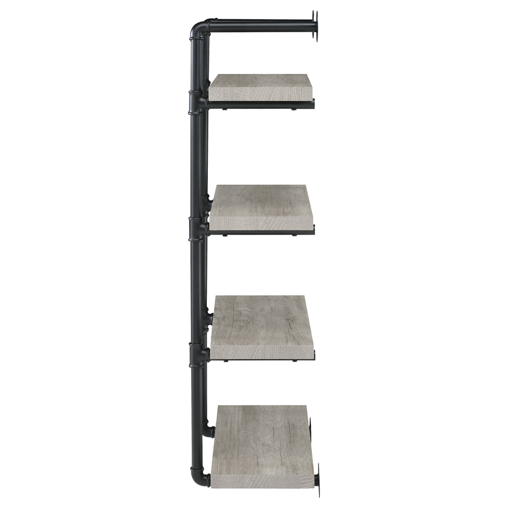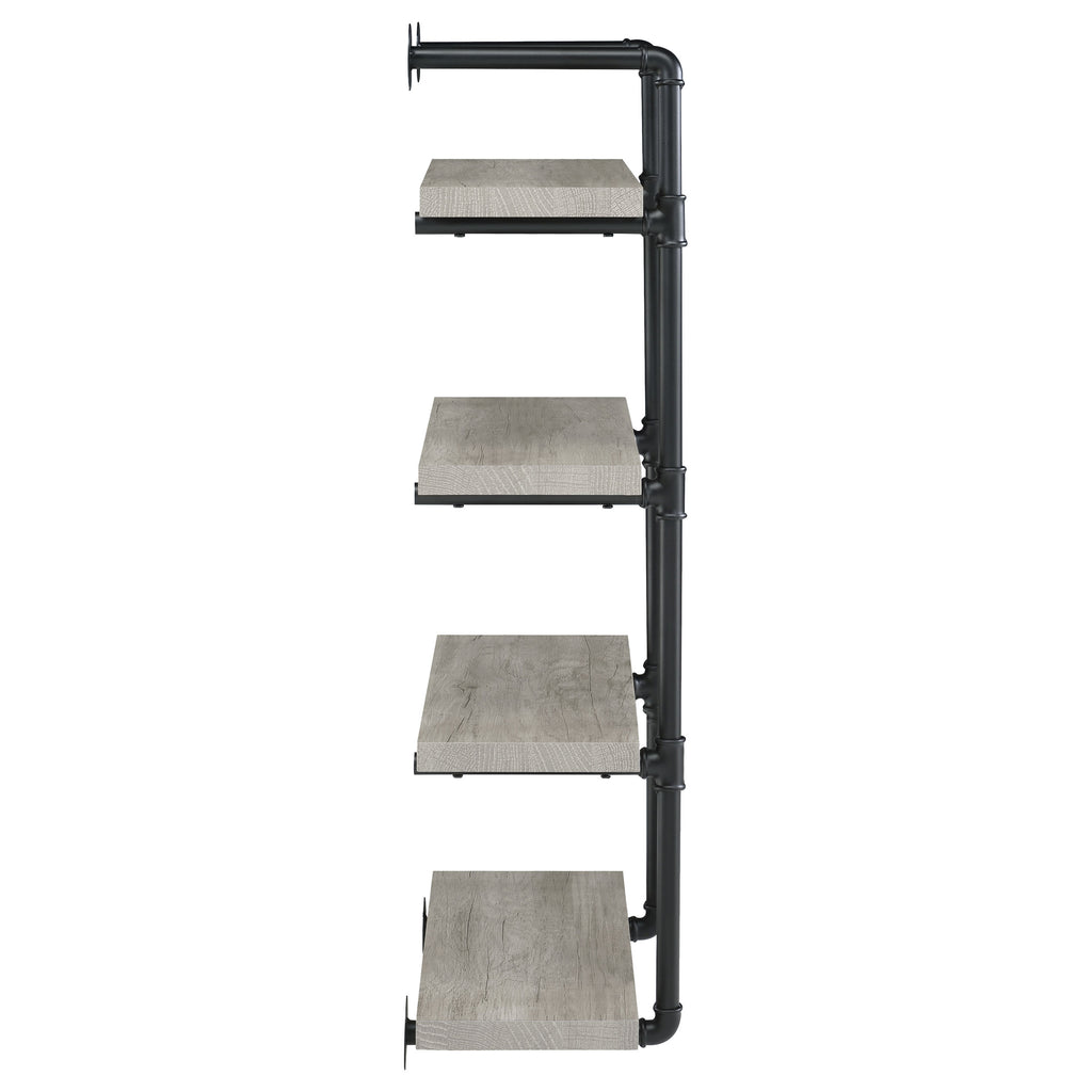 This wall-mounted bookshelf blends industrial charm with practical design. Supported by a black plumbing pipe frame, it features four open shelves that provide ample room for books, décor, or office supplies. With its vertical orientation, this compact shelf maximizes storage while conserving floor space. Constructed from engineered wood, laminate veneer, and sturdy metal, it offers durability and strength, making it a versatile addition to any living room, bedroom, or office. Key Features: • Industrial wall-mounted bookshelf in rustic oak with black pipe frame • Four open shelves provide space for books, décor, and office storage • Durable black plumbing pipe frame enhances industrial style appeal • Vertical design maximizes storage capacity without taking floor space • Crafted from engineered wood, laminate veneer, and heavy gauge metal • Versatile piece works well in a bedroom, living room, or home office