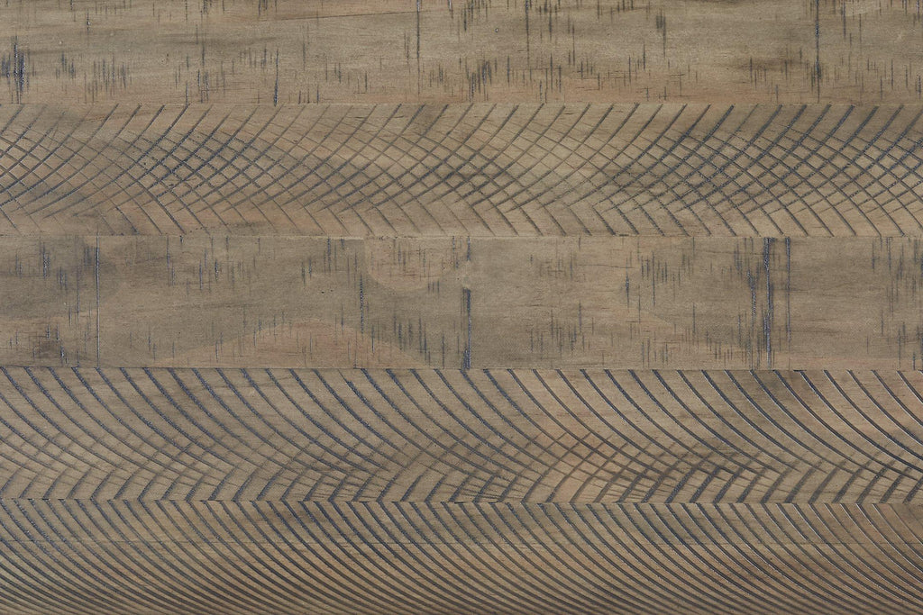 Crafted with solid pine wood treated to a weathered gray finish, this 2-piece end table set is rustic farmhouse living at its best. Crossbuck styling adds striking flair. Metal industrial brackets incorporate an industrial twist.